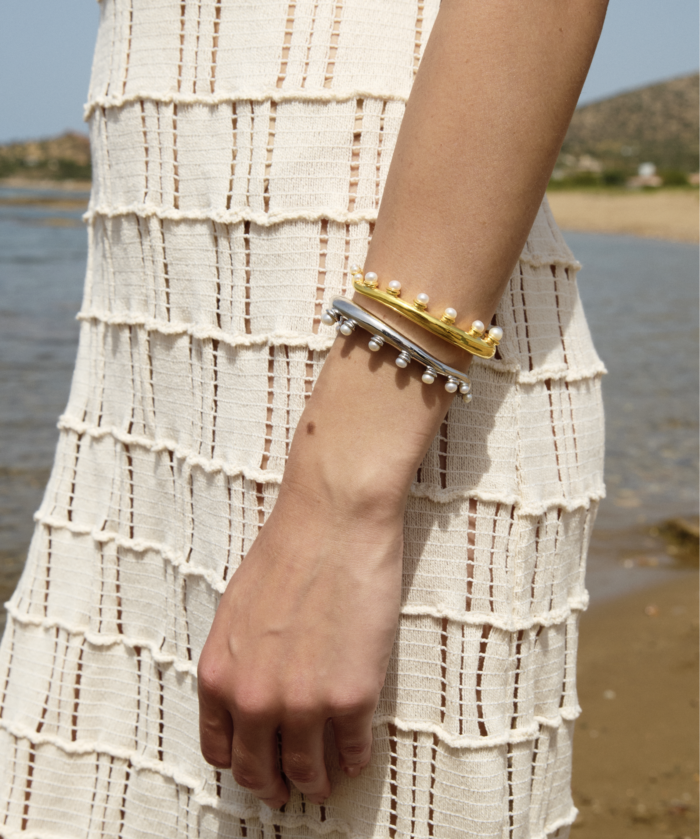 For bold pieces that will stand strong alone or add impact to a layered wrist, choose Ruddock’s stunning chunky chains, Apres Youth’s playful heart bangle, or Feggeri’s sculptural sea-inspired cuffs which bring a touch of the Mediterranean to your jewellery collection.