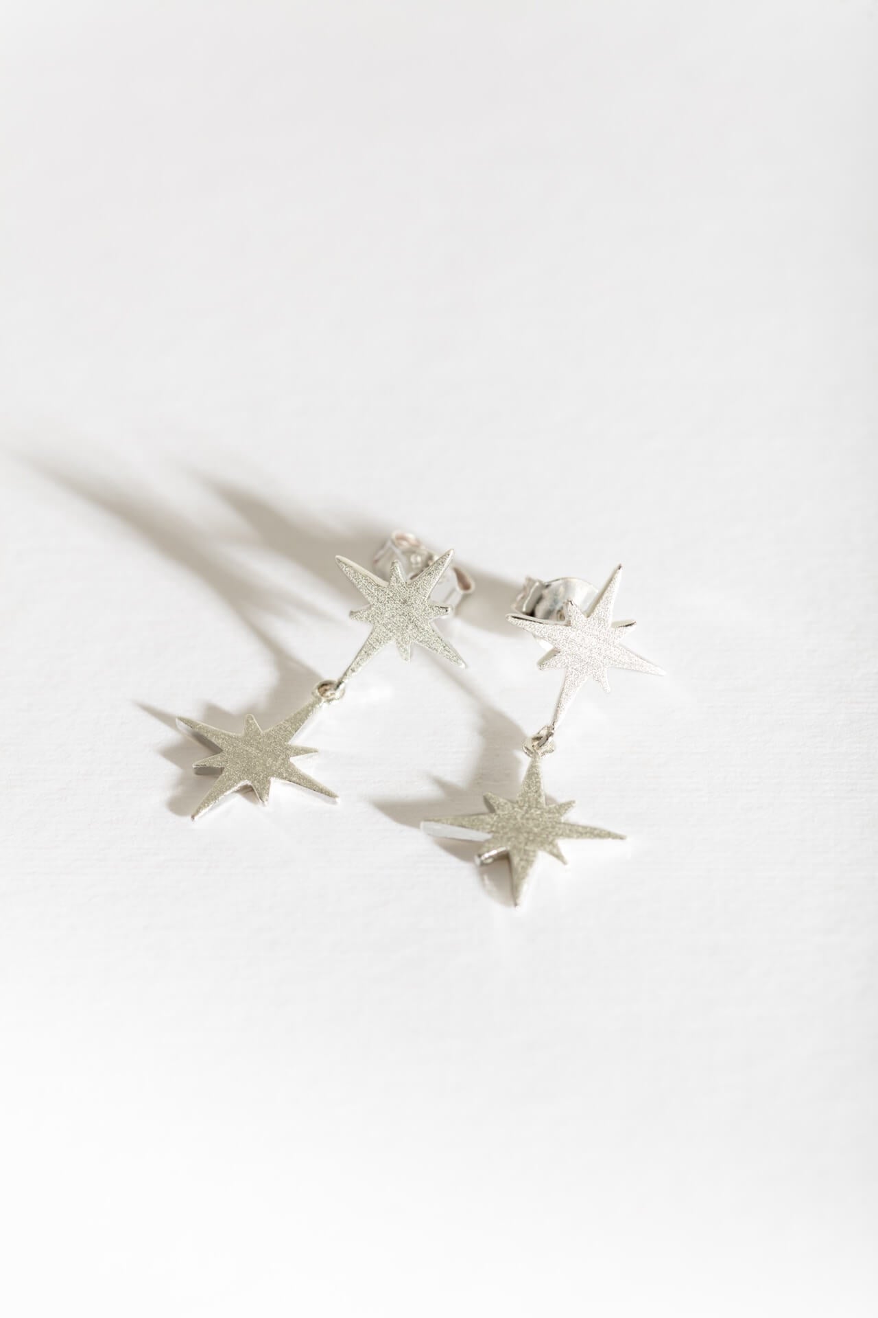 Perfect for gifting....and keeping for yourself, these best-selling double-star earrings are destined to be your go-to accessory to wear year after year. Comfortable enough to wear 24/7 and made from 100% recycled silver, you can feel good every time you reach for these celestial delights. Push-back earring post with butterfly fastening.
