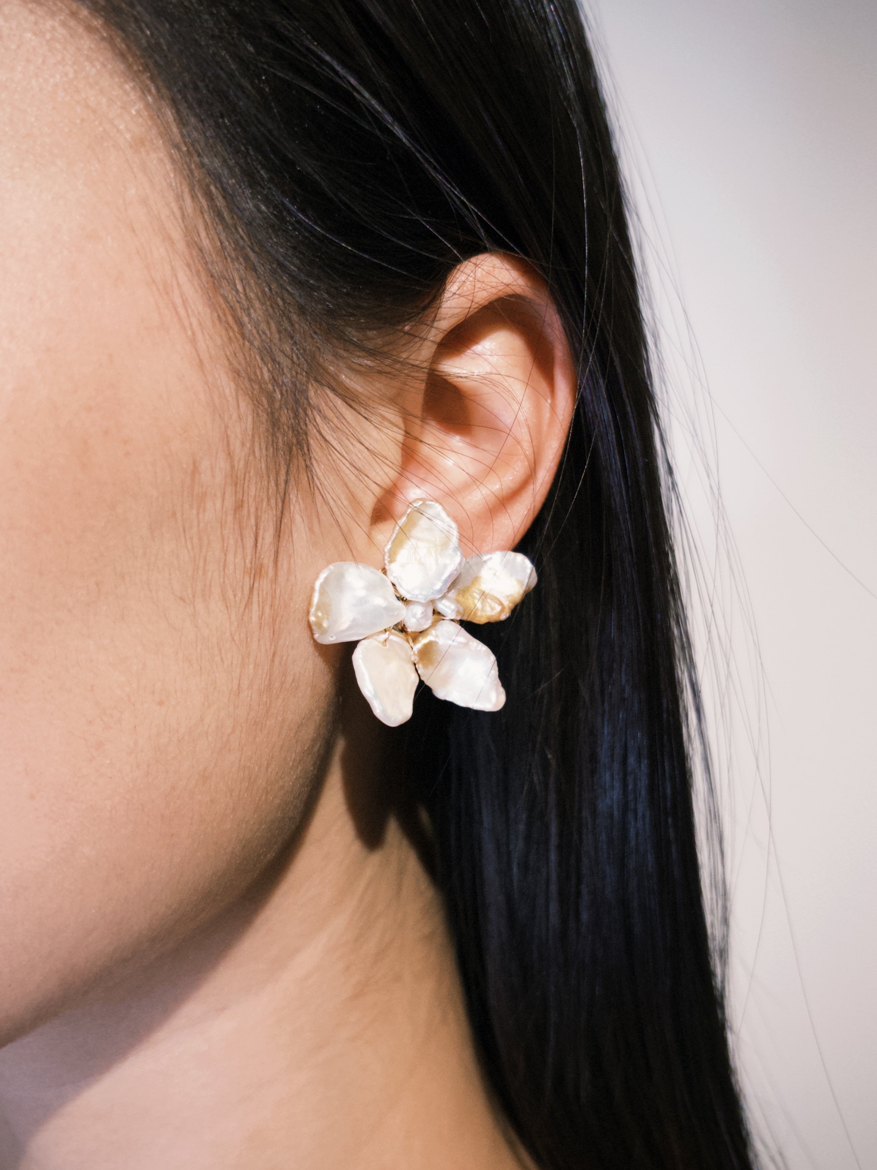 Freshwater keshi petal pearls, 14K gold-plated brass, 14K gold plated 925 sterling silver auricular needle