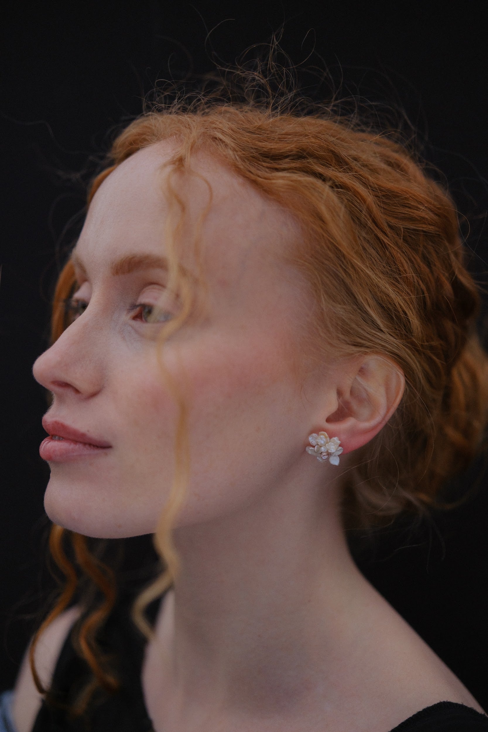 Floral pearl beaded stud earrings, with choice of metal finish each pieces is delicately handcrafted in Norwich.
