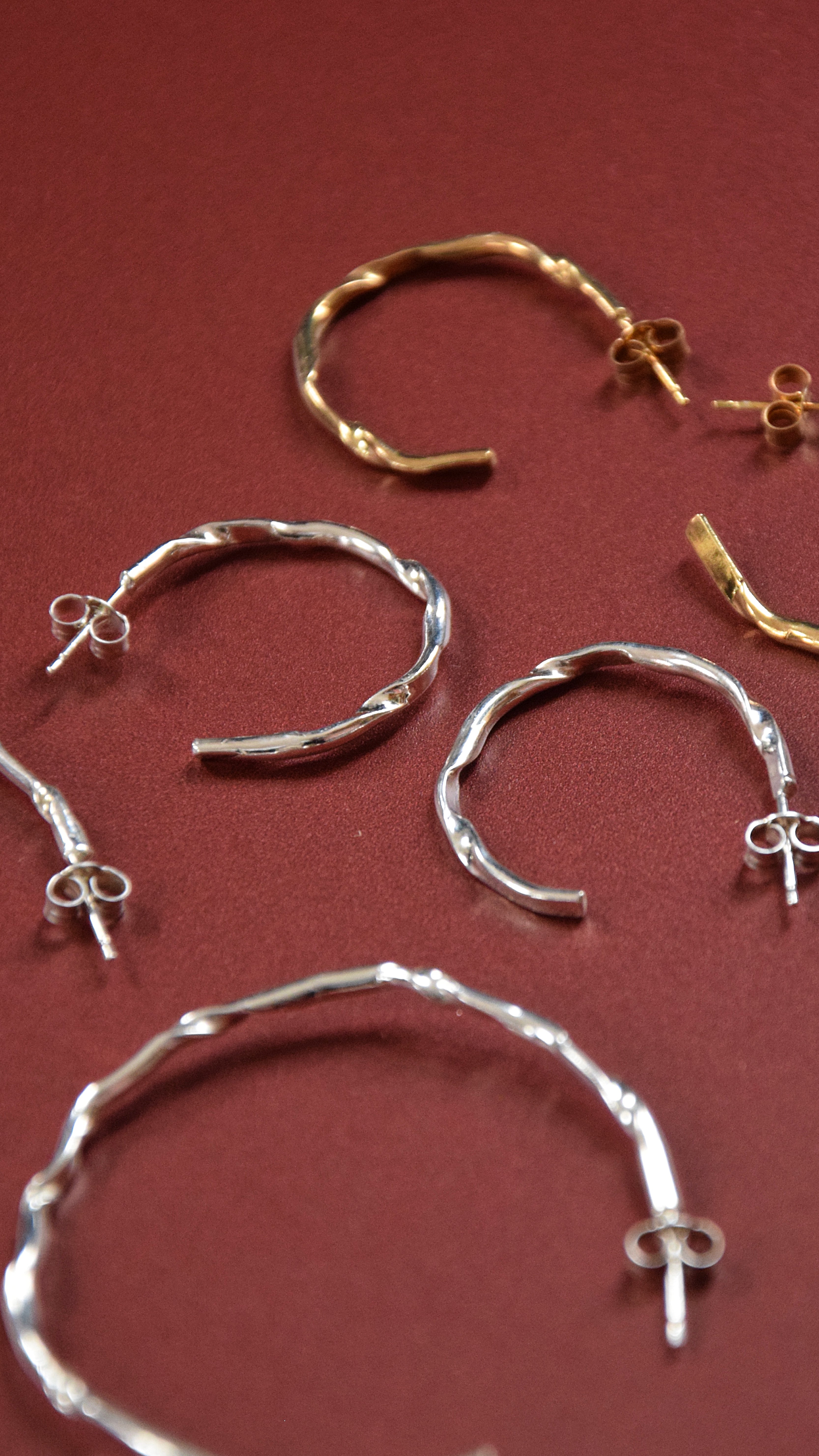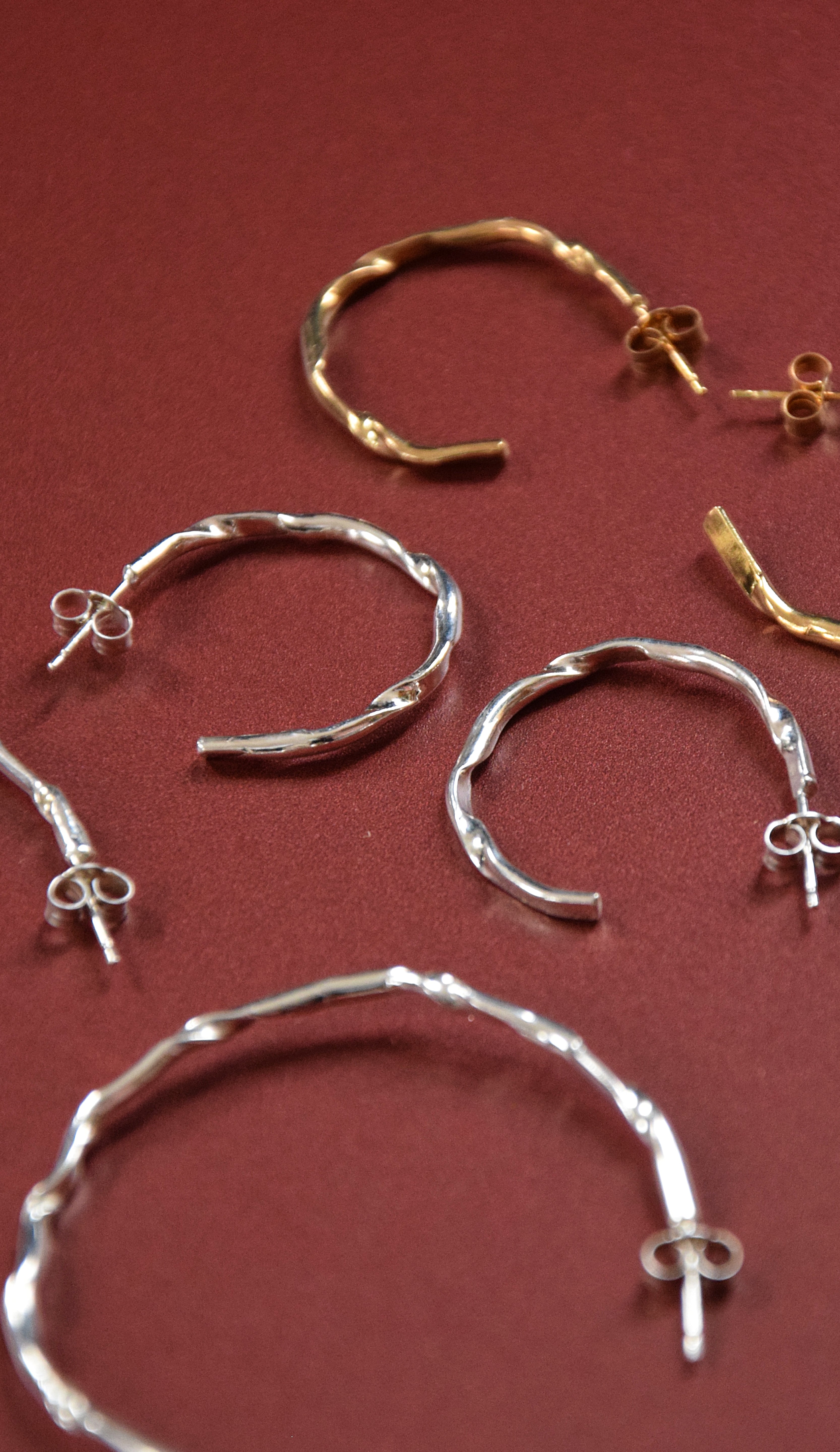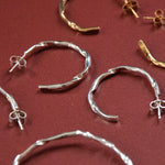 The ultimate statement party hoop with a bit of a difference, the design of these earrings was informed by the beautiful way silver 'crumples' when heated at a certain angle. The metal is twisted which means that light dances off the different angles.