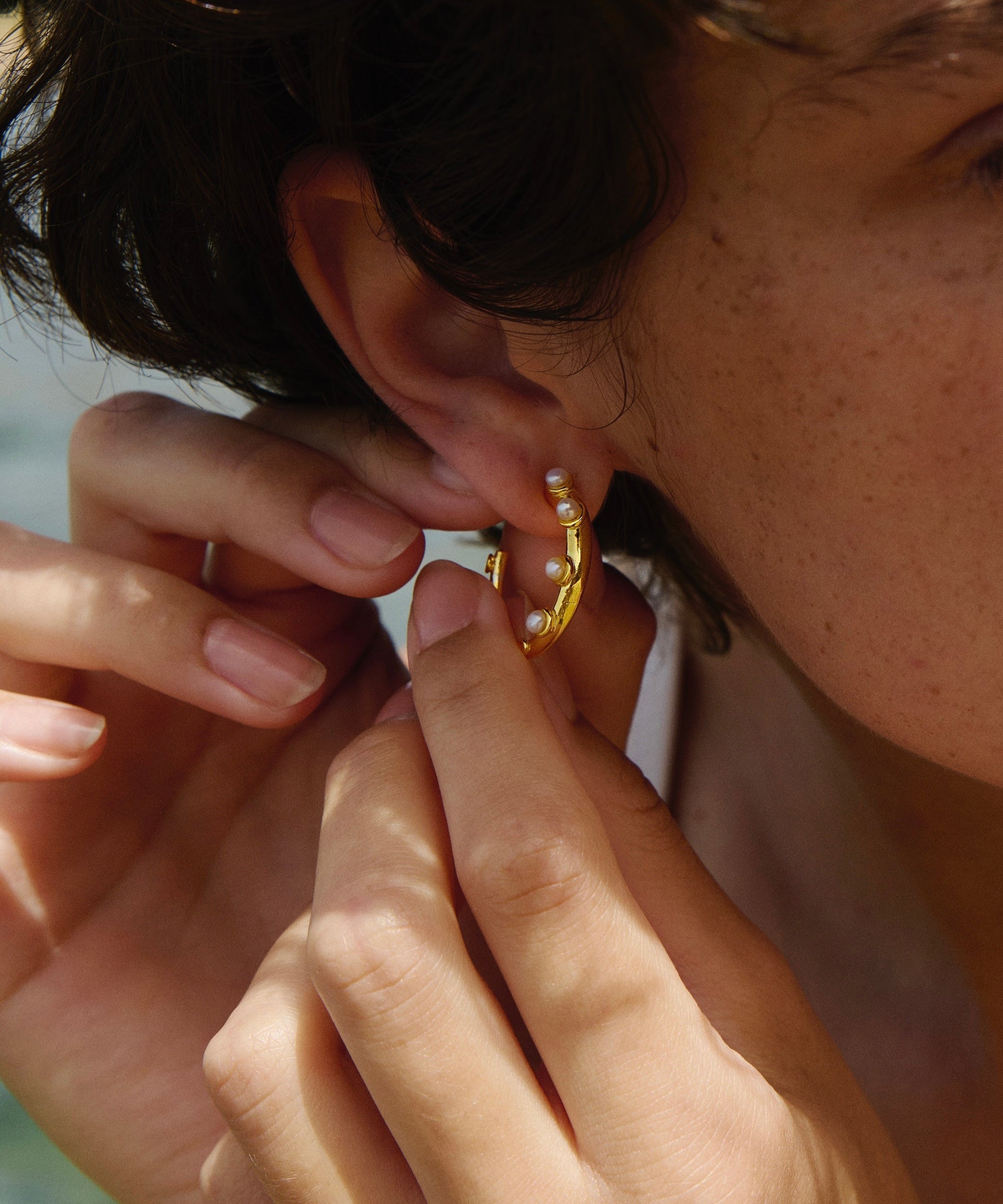 Okto Pearl Hoop Earrings Gold