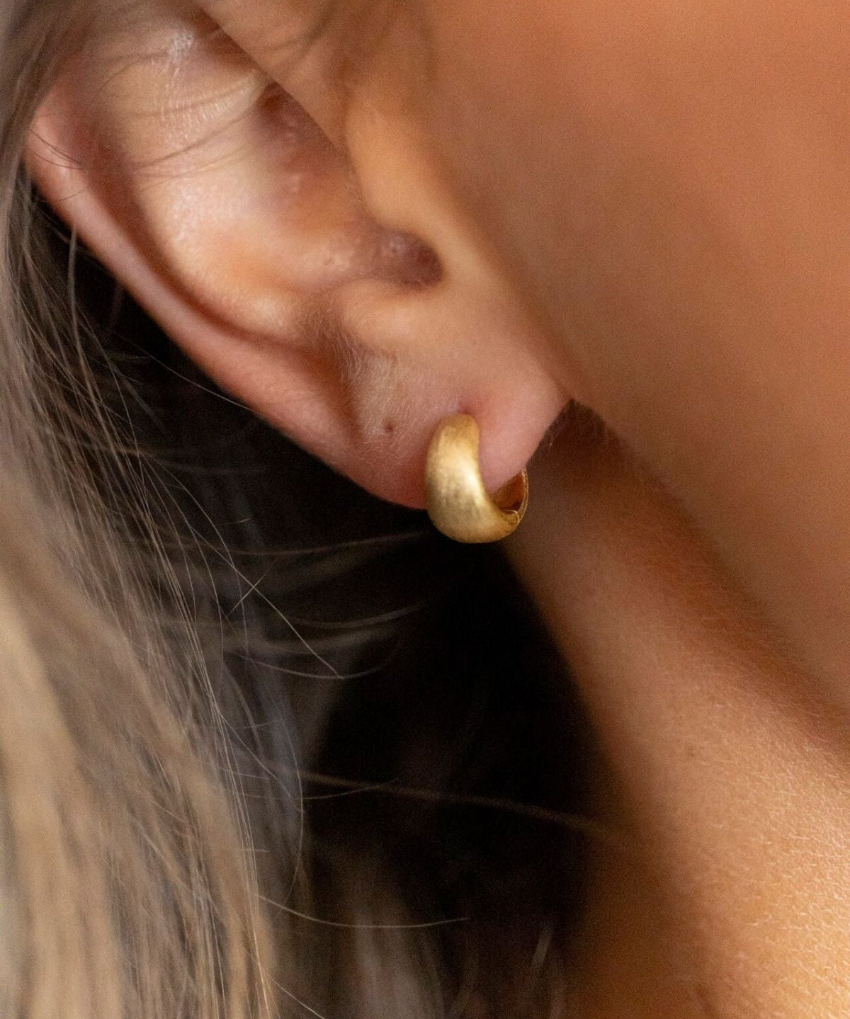 Brushed Gold Chunky Huggie Hoops