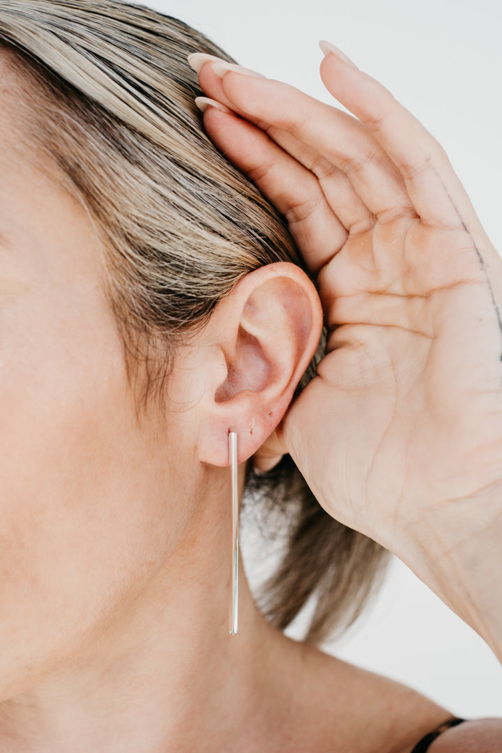 The Crux maxi XL drop earrings have an elegant structural aesthetic - they're low hanging earrings that make a very real statement. Layer up with Crux mini earrings + ear cuff.