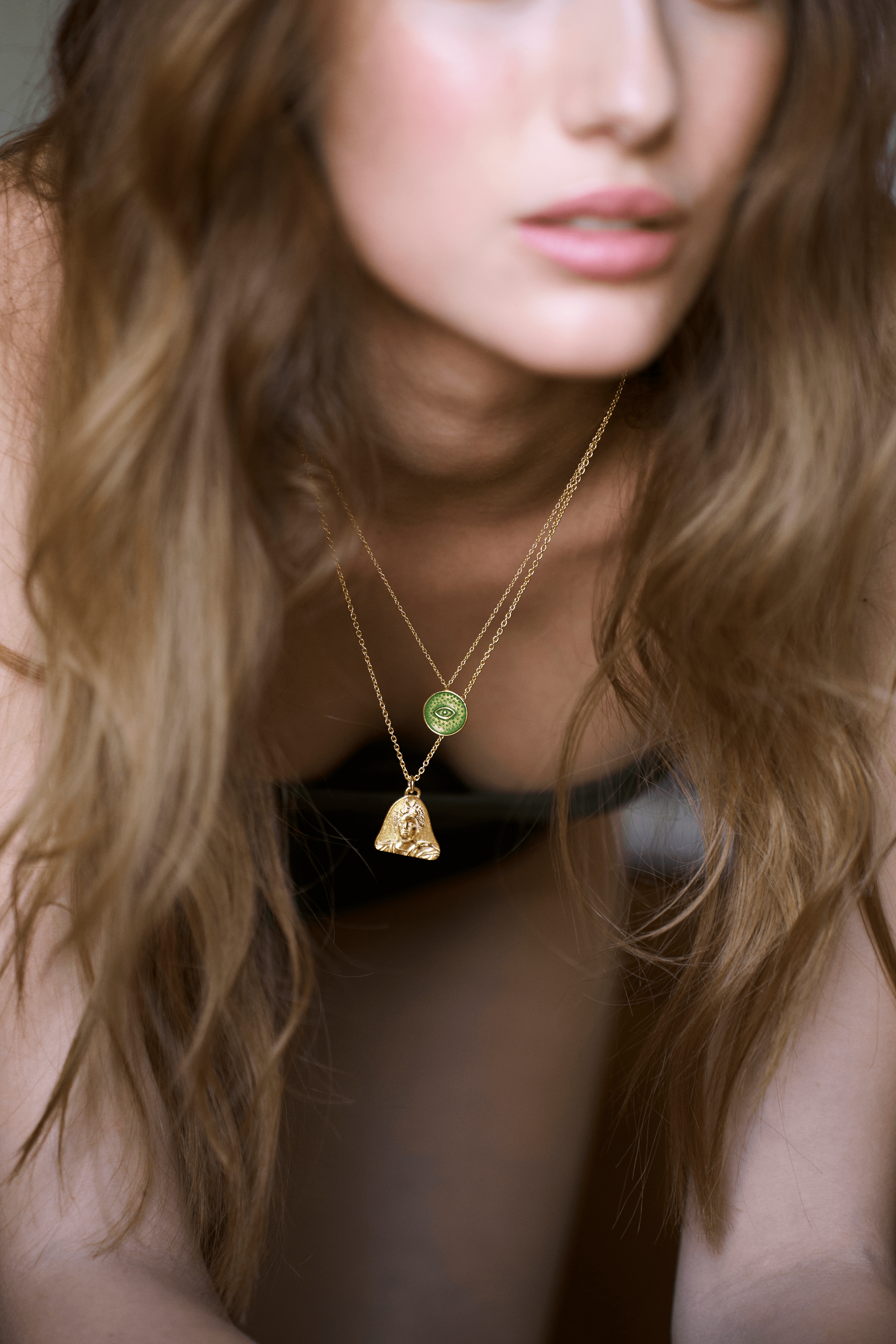 Featuring Selene, goddess and personification of the moon in Ancient Greece, this necklace is an homage to the radiant Greek August full moon. Taking notes from Ancient Greek vase fragments, artefacts and coins, this necklace is designed to feel truly like an unearthed treasure. Elegant and symbolic, it is a tribute to lunar beauty, feminine power, and the stories written in the stars.