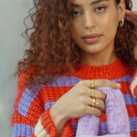 All Junk Jewels pieces are made from 14k gold plated brass or silver plated brass with colourful cubic zirconia or synthetic opal gemstones. They are made with hypo-allergenic materials, with 1 micron thick plating and a special e-coating to prevent scratches, to ensure jewels will shine for longer.