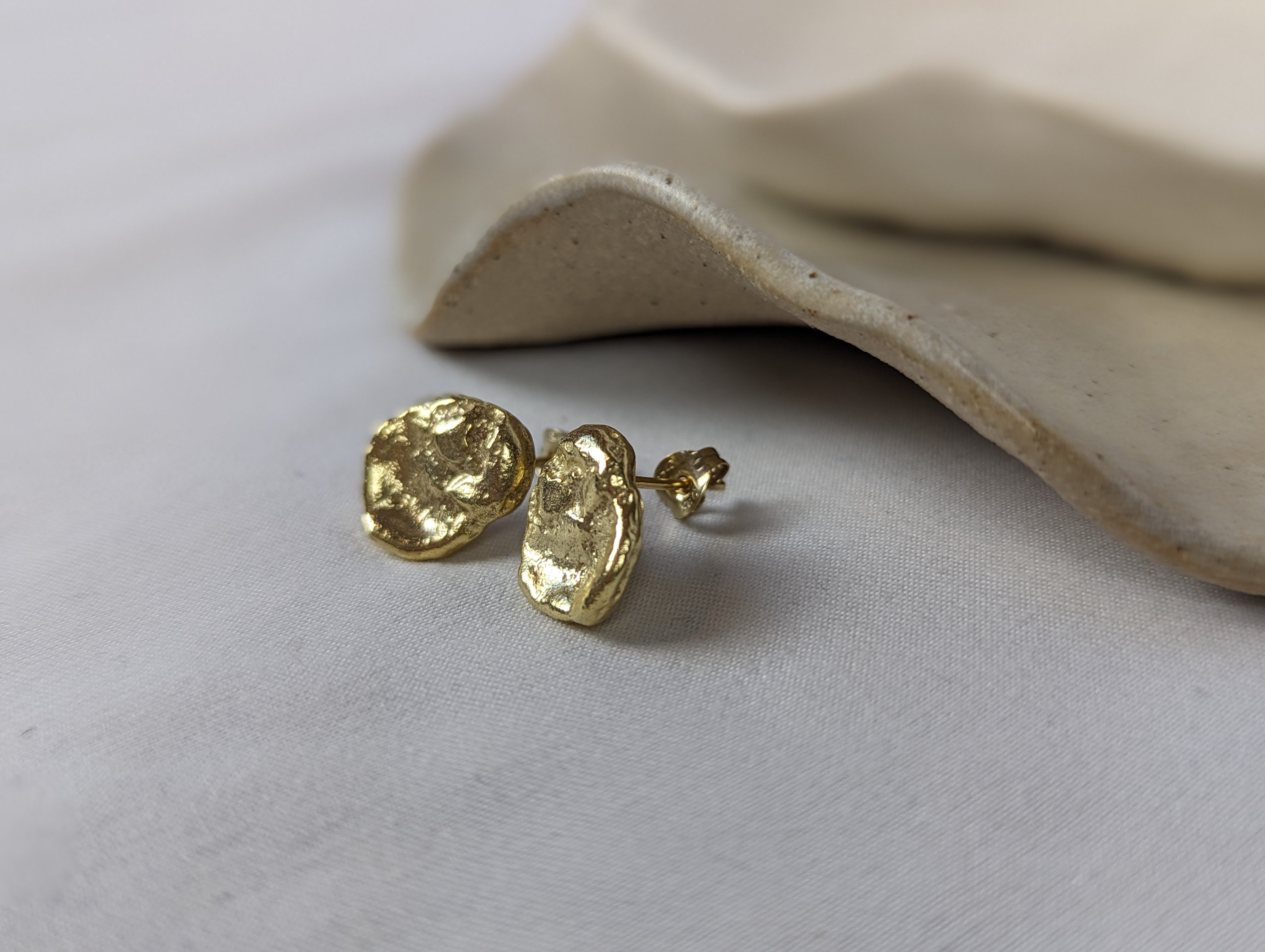 Milly-Maunder-Dara-Studs-Organic-Rustic-Textured-Antique-Vintage-Oval-Stud-Earrings-18ct-Gold-Plated-Stacking