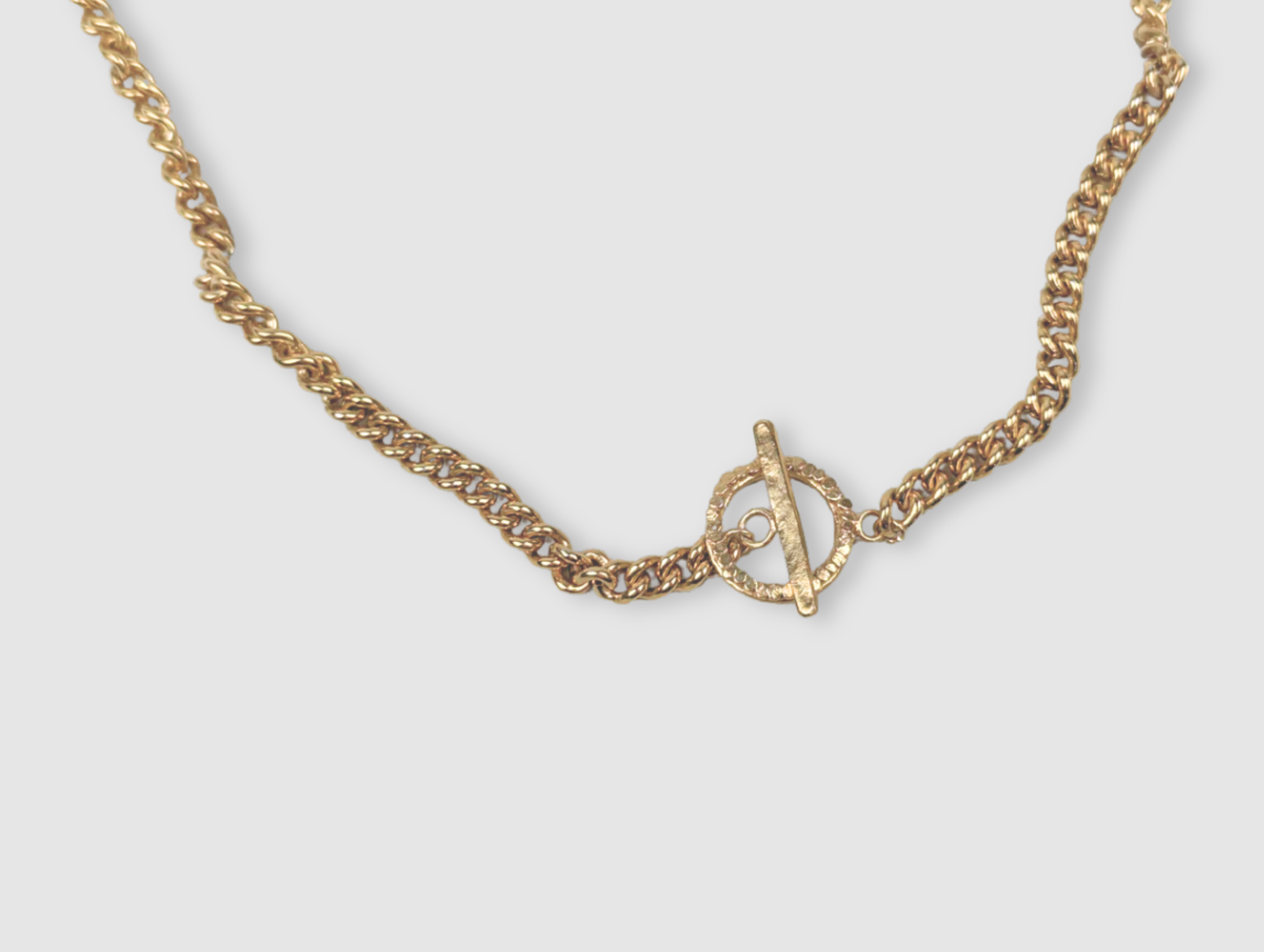 Milly-Maunder-Loop-and-Bar-Pendant-Gold-Chunky-Rustic-Chain-Necklace-Statement-18ct-Plated-Vintage-Antique-Heirloom-Organic