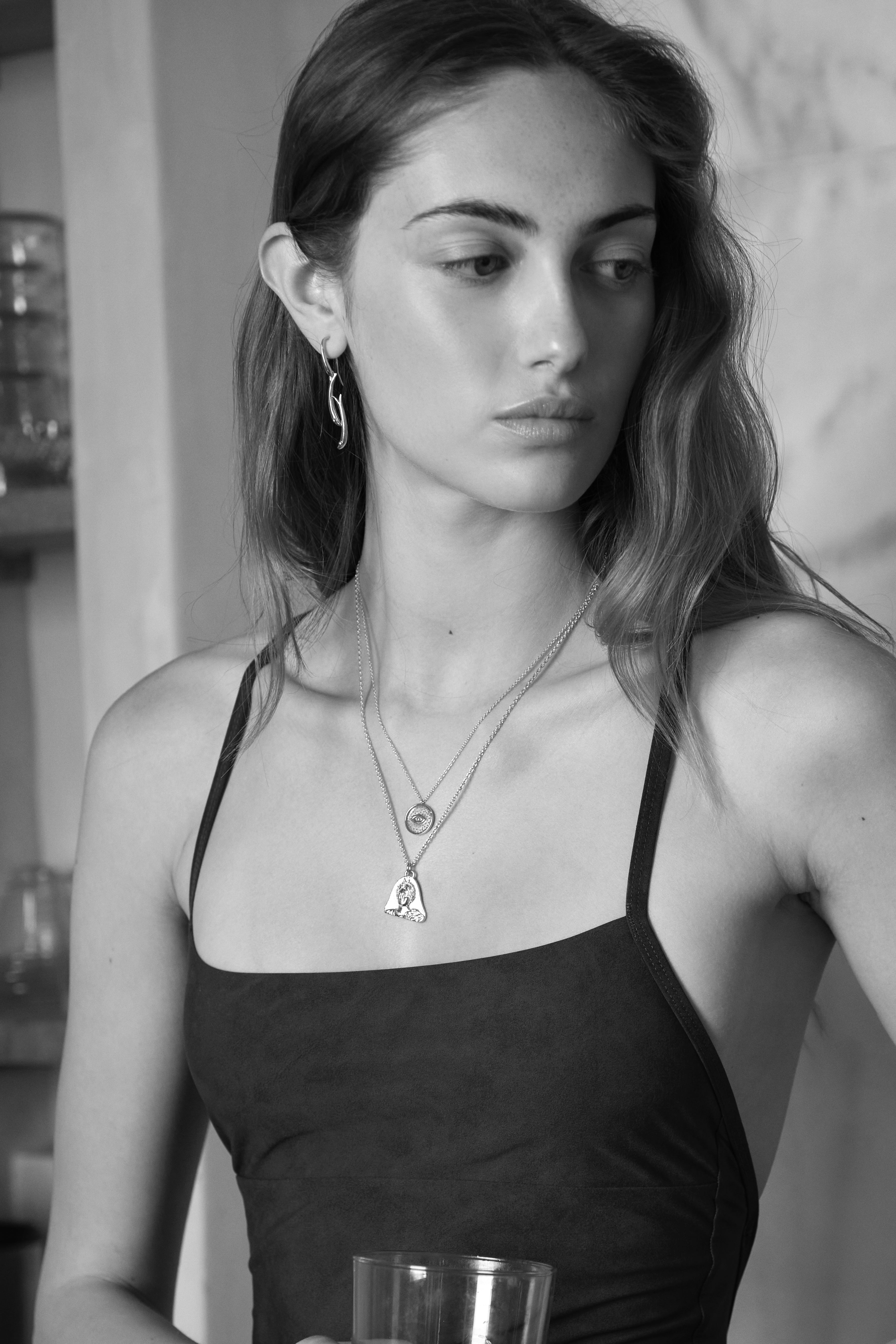 Featuring Selene, goddess and personification of the moon in Ancient Greece, this necklace is an homage to the radiant Greek August full moon. Taking notes from Ancient Greek vase fragments, artefacts and coins, this necklace is designed to feel truly like an unearthed treasure. Elegant and symbolic, it is a tribute to lunar beauty, feminine power, and the stories written in the stars.
