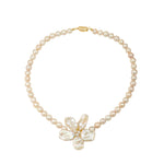 Pearl beaded necklace with statement pearl flower pendant. Each piece of jewellery is delicately handcrafted in Norwich. Choice of gold or silver clasp.