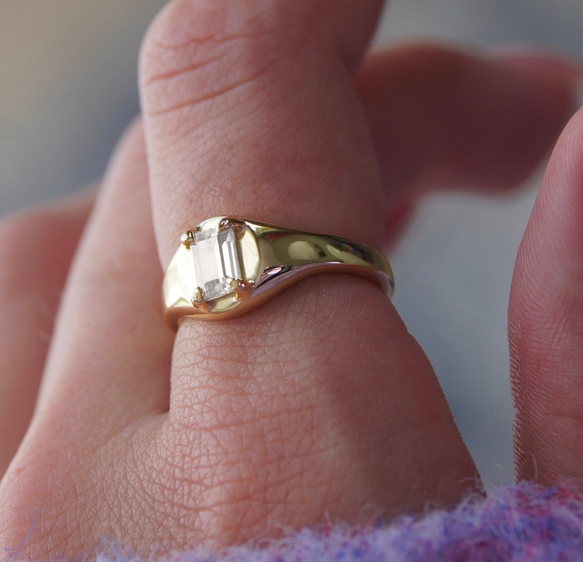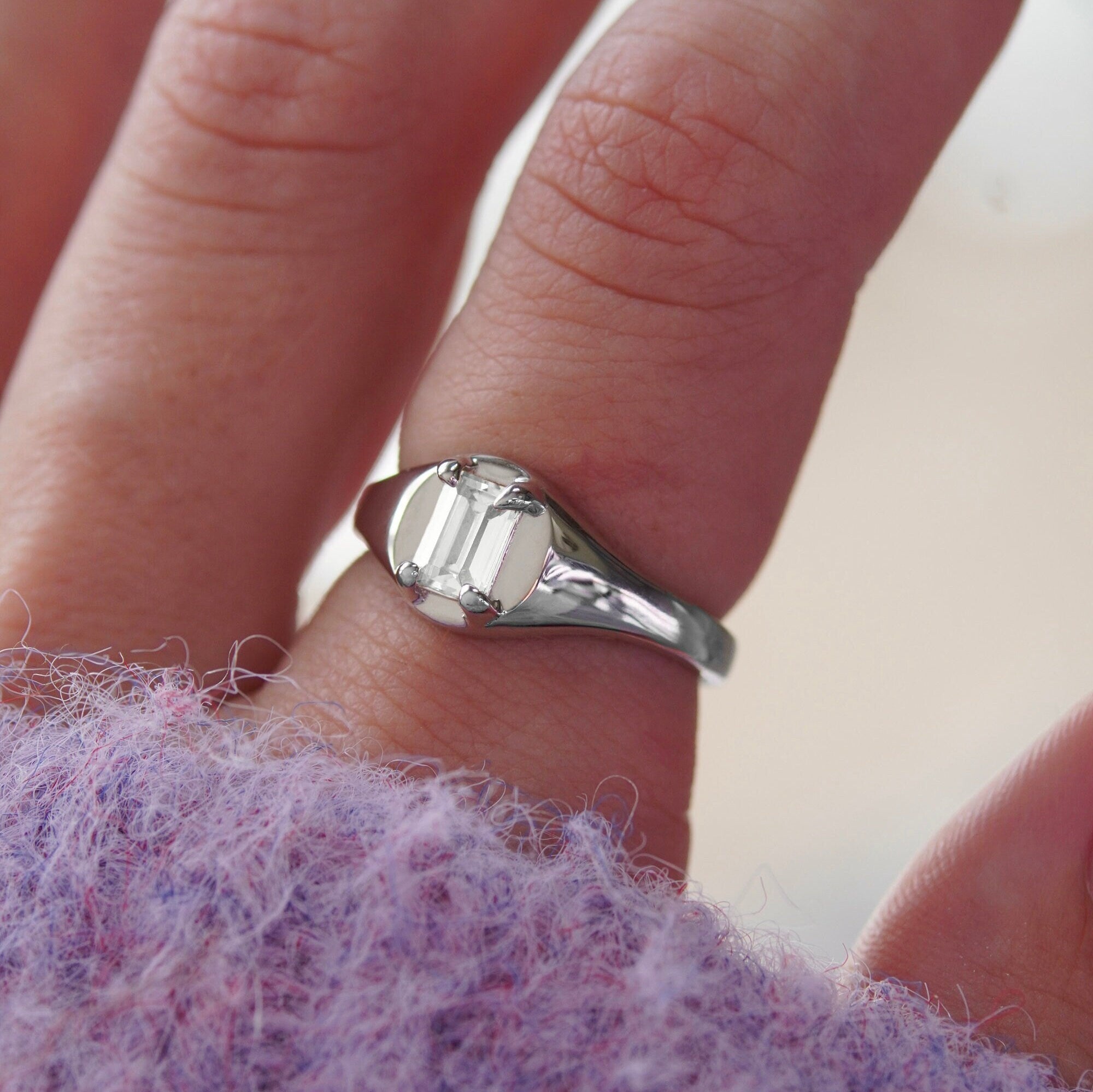 The AUBREY ring is crafted from Gold Vermeil or 925 Sterling Silver and features a sleek and modern claw set emerald cut stone. Level up your ring stack with this super special design, featuring an adjustable ring back. The unique adjustable design allows the ring to be worn on any finger, simply slide the ring wider or small to get your perfect fit.