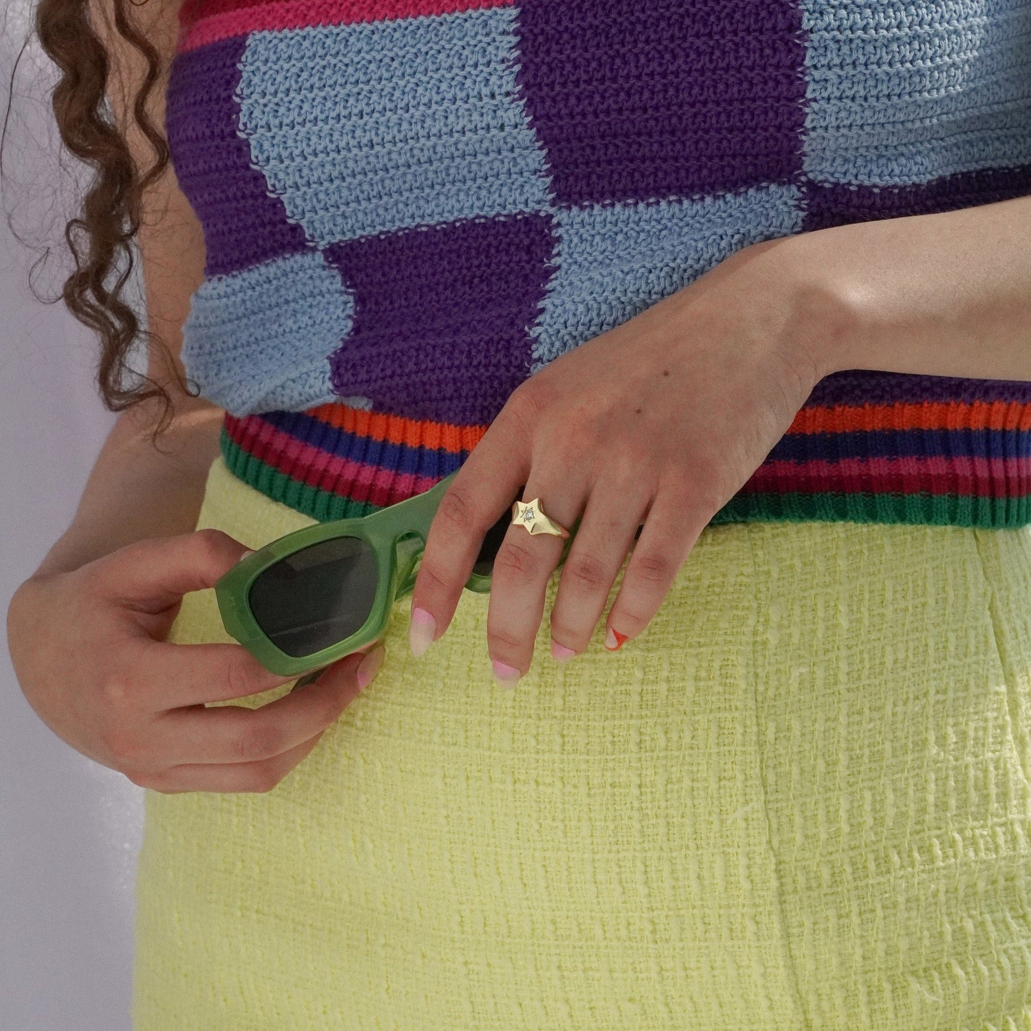 All Junk Jewels pieces are made from 14k gold plated brass or silver plated brass with colourful cubic zirconia or synthetic opal gemstones. They are made with hypo-allergenic materials, with 1 micron thick plating and a special e-coating to prevent scratches, to ensure jewels will shine for longer.