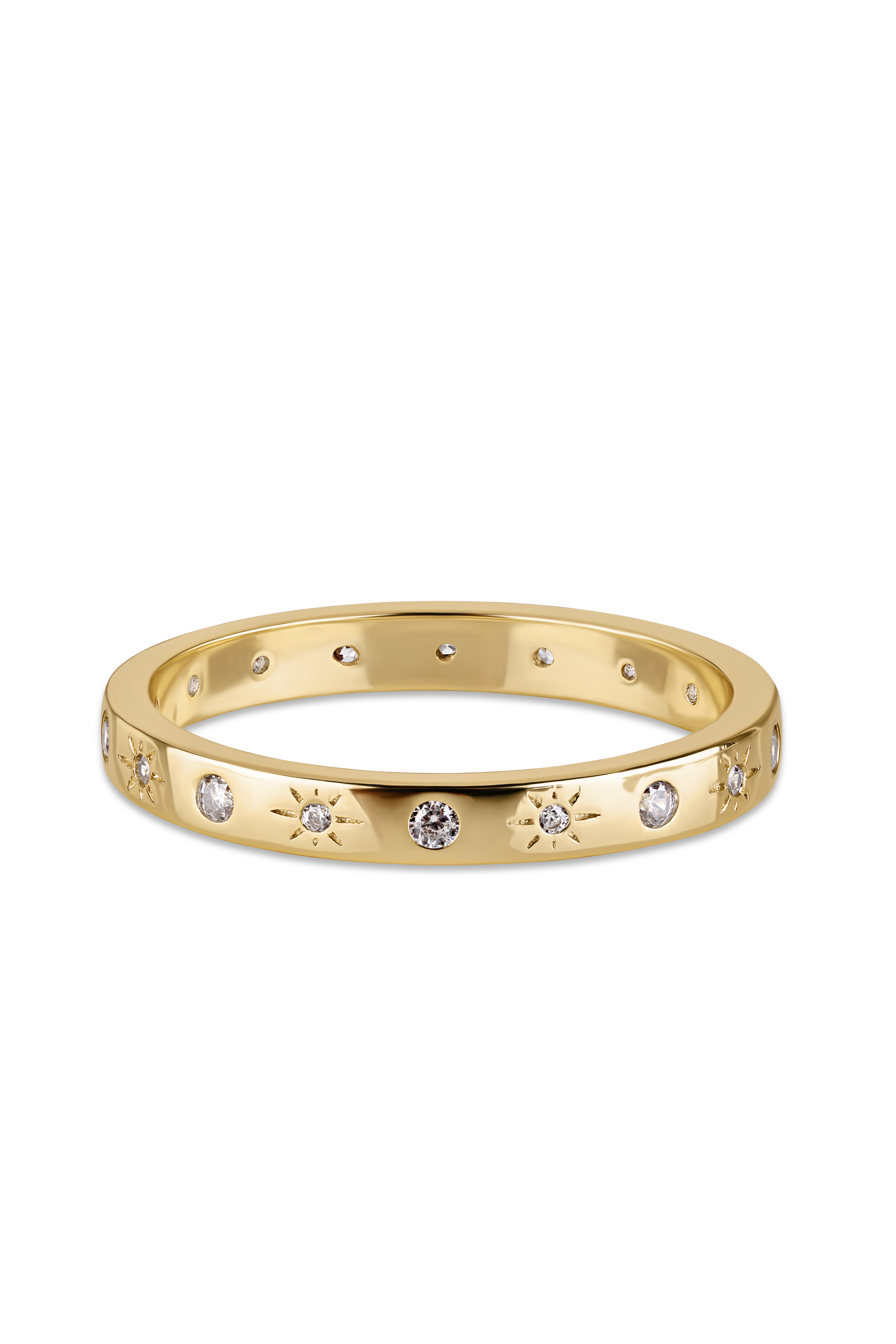 Fans of starbursts, will have a sweet spot for this starburst ring because it’s subtle but still offers plenty of sparkle. You’ve got the crystal details to thank for that.