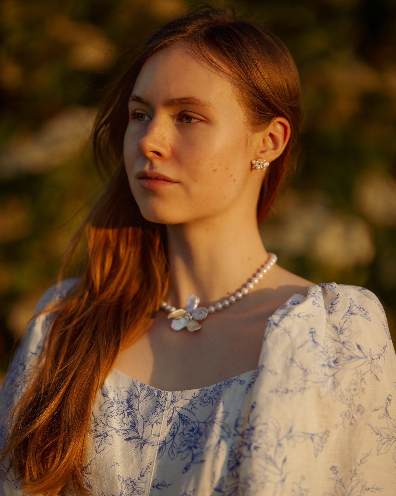 Every year, Cherie Jewels travels to Zhejiang, China, where around 95% of freshwater pearls in the world are produced, to handpick each pearl that goes into her pieces. They also use gold plating and sterling silver.