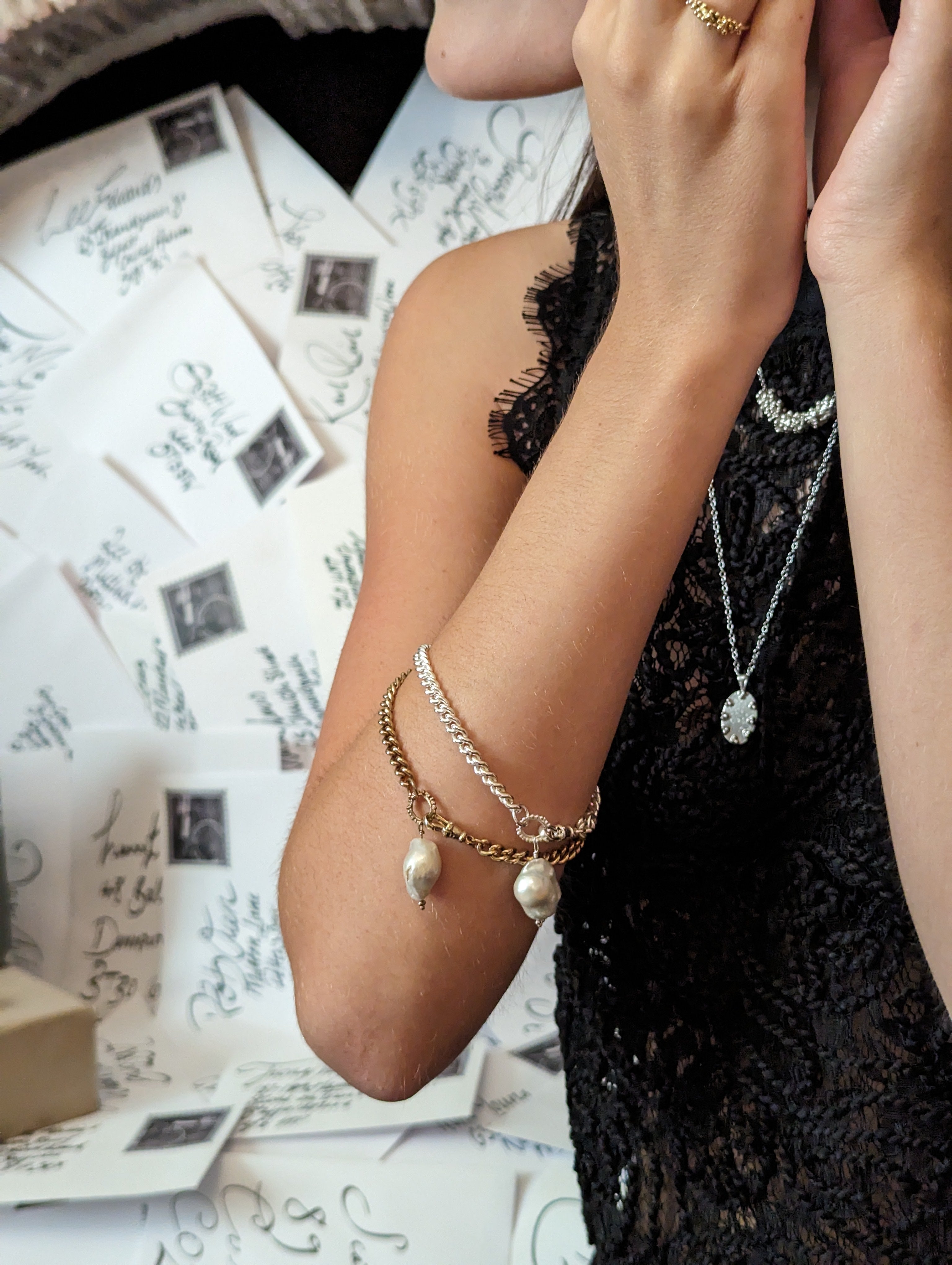 Keep your pieces out of direct sunlight to avoid tarnishing.