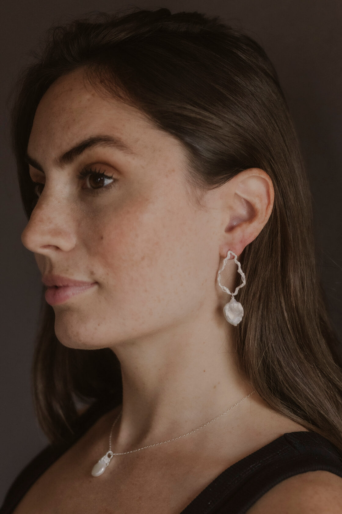 Give your pearl earrings an upgrade with these striking oversized silver earrings. Light as air so easy to wear all day and night, get ready for the compliments every time you wear these. Claire was inspired by the grit needed to create pearls and the pioneering resilience of lichens for meaningful jewellery.